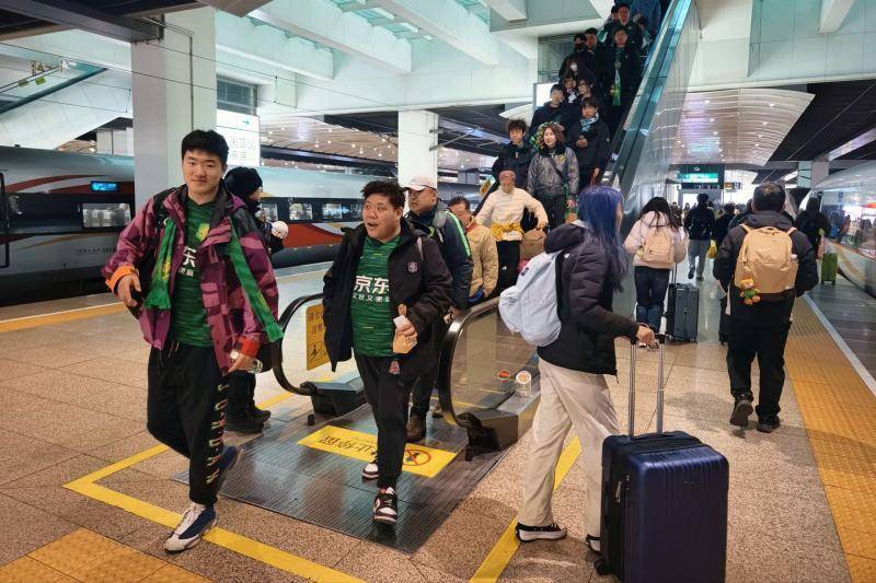 为确保近400名球迷旅客安全、有序、温馨出行,北京南站积极联系对接球迷协会,了解赛事日程、观赛规模等信息,动态研判客流数据,做好开行计划核对,制定了周密的运输组织方案。车站通过开放充足安检进站通道、加密广播频次,并在进站口、检票口、站台、电扶梯等部位增加人员进行安全提示、解答问询和宣传引导。针对集中出发的球迷旅客,车站提前规划候车检票区域,合理规划流线确保进站乘车高效顺畅。